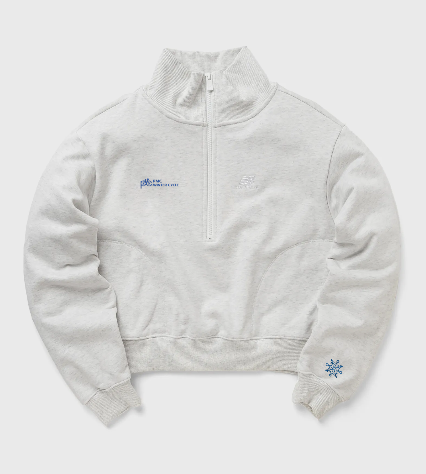 PMC 2026 Winter Cycle exclusive! Wear your Winter Cycle pride with our oversized, roomy, modern silhouette 1/4 zip sweatshirt by New Balance! This long sleeve top features embroidered Winter Cycle and New Balance branding and an oversized fit that falls at the hip, to create a sporty look you can dress up or down.