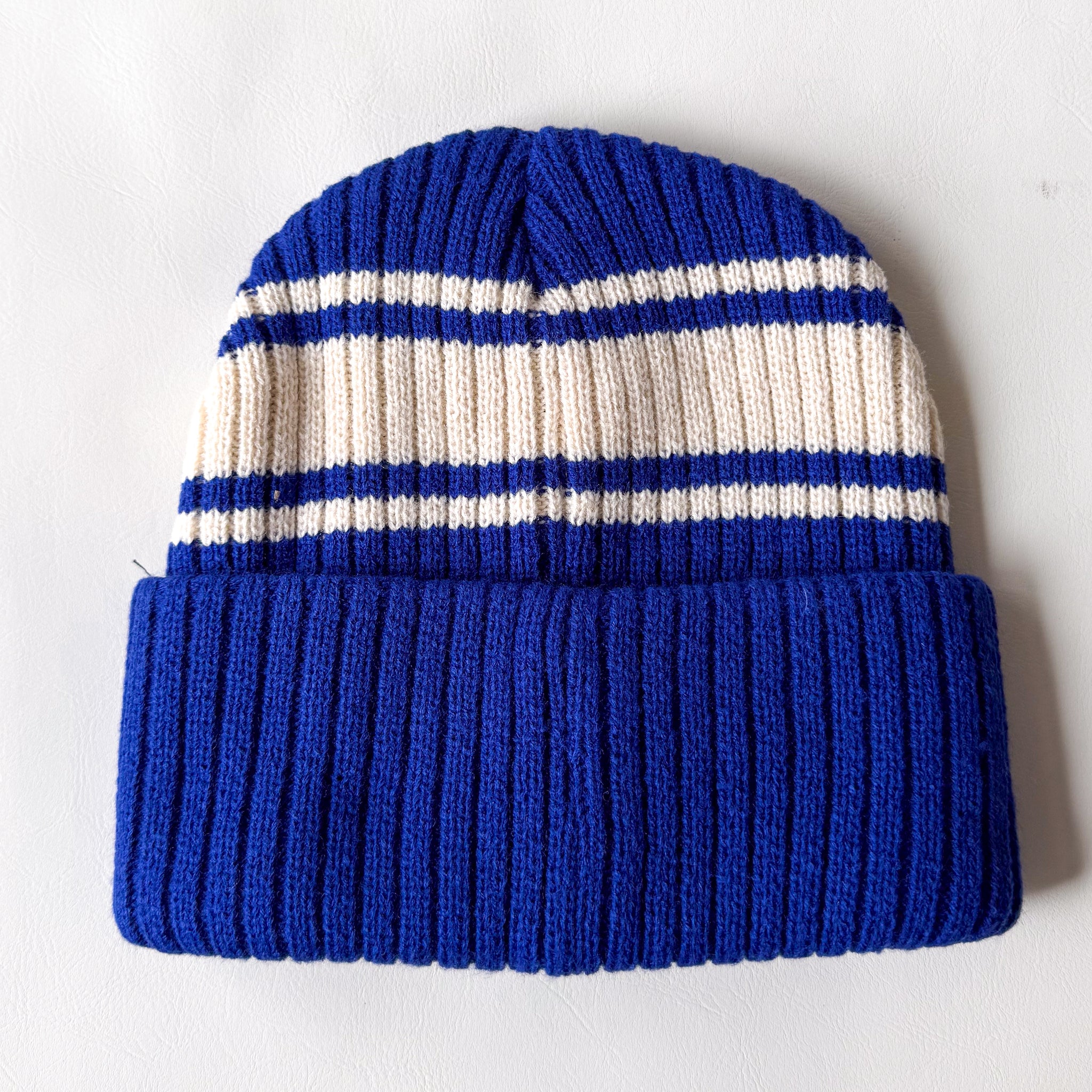 Crafted with premium knit material, this beanie offers exceptional comfort and warmth, making it perfect for chilly days. The royal blue and white color scheme provides a fresh, modern look that complements any winter outfit.